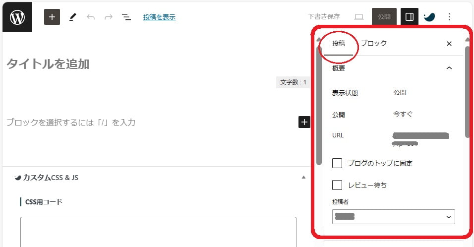 編集画面の右サイドバーの「投稿」部分を下にスクロール