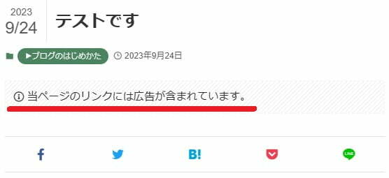 でも実は、各ページごとでも「PR表記」設定ができるので、次で解説しますね。