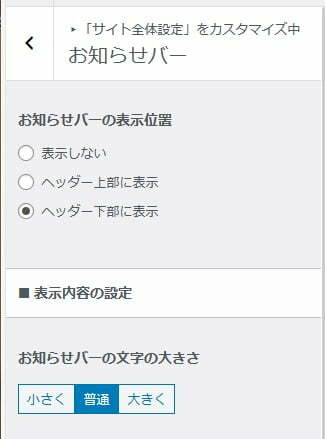 「お知らせバーの文字の大きさ」については、お好みで変更していきましょう。