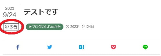 上記設定をすると、下記のような「PR表記」になります。