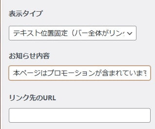 - お知らせ内容:「本ページはプロモーションが含まれています」を入力